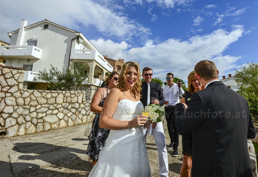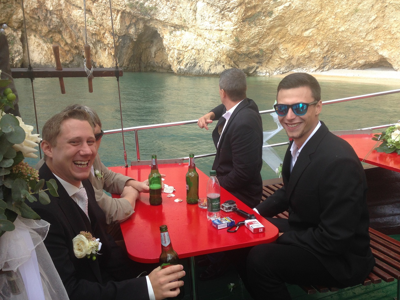 Danach ging’s ab aufs Boot Košljun, die wunderschön für diesen Anlass geschmückt wurde, und in der schönen Bucht Golden Beach wurde die Trauung vollzogen. In ausgelassener Stimmung haben alle den Tag auf der Košljun sehr genossen und einige Gäste nutzten auch die Gelegenheit für ein erfrischendes Bad.