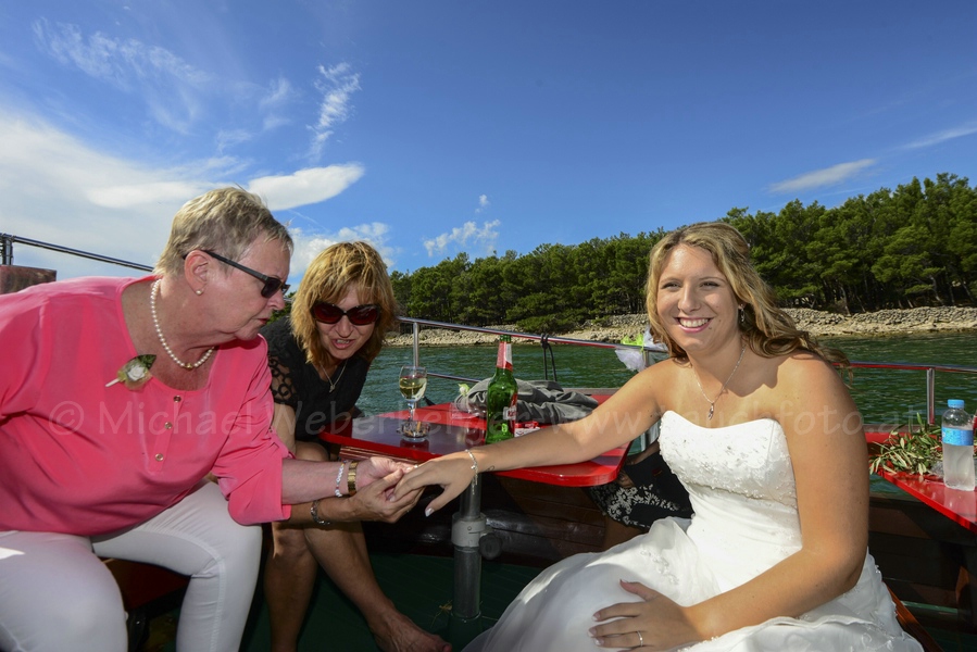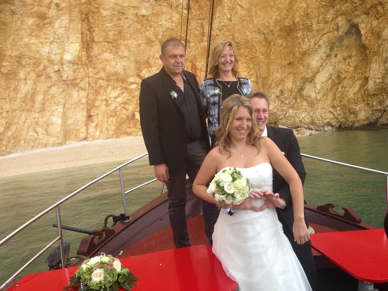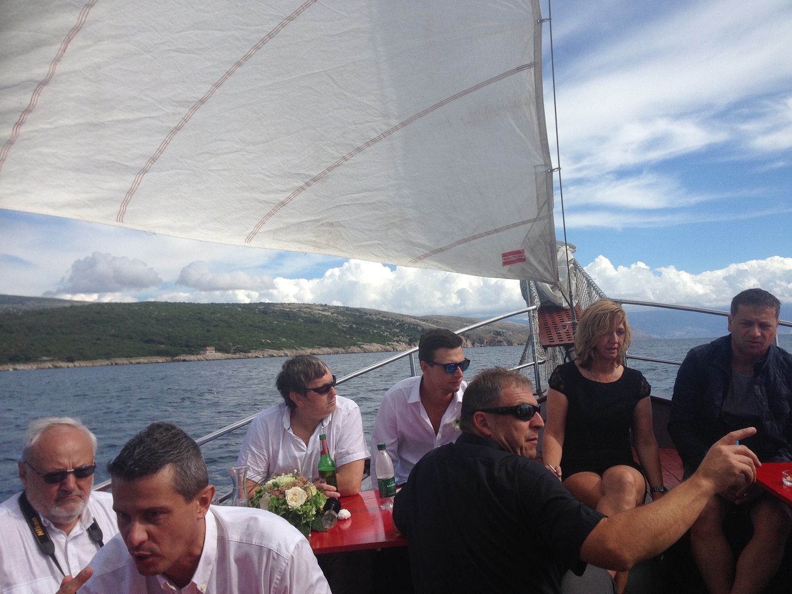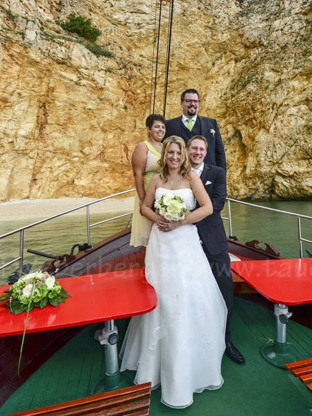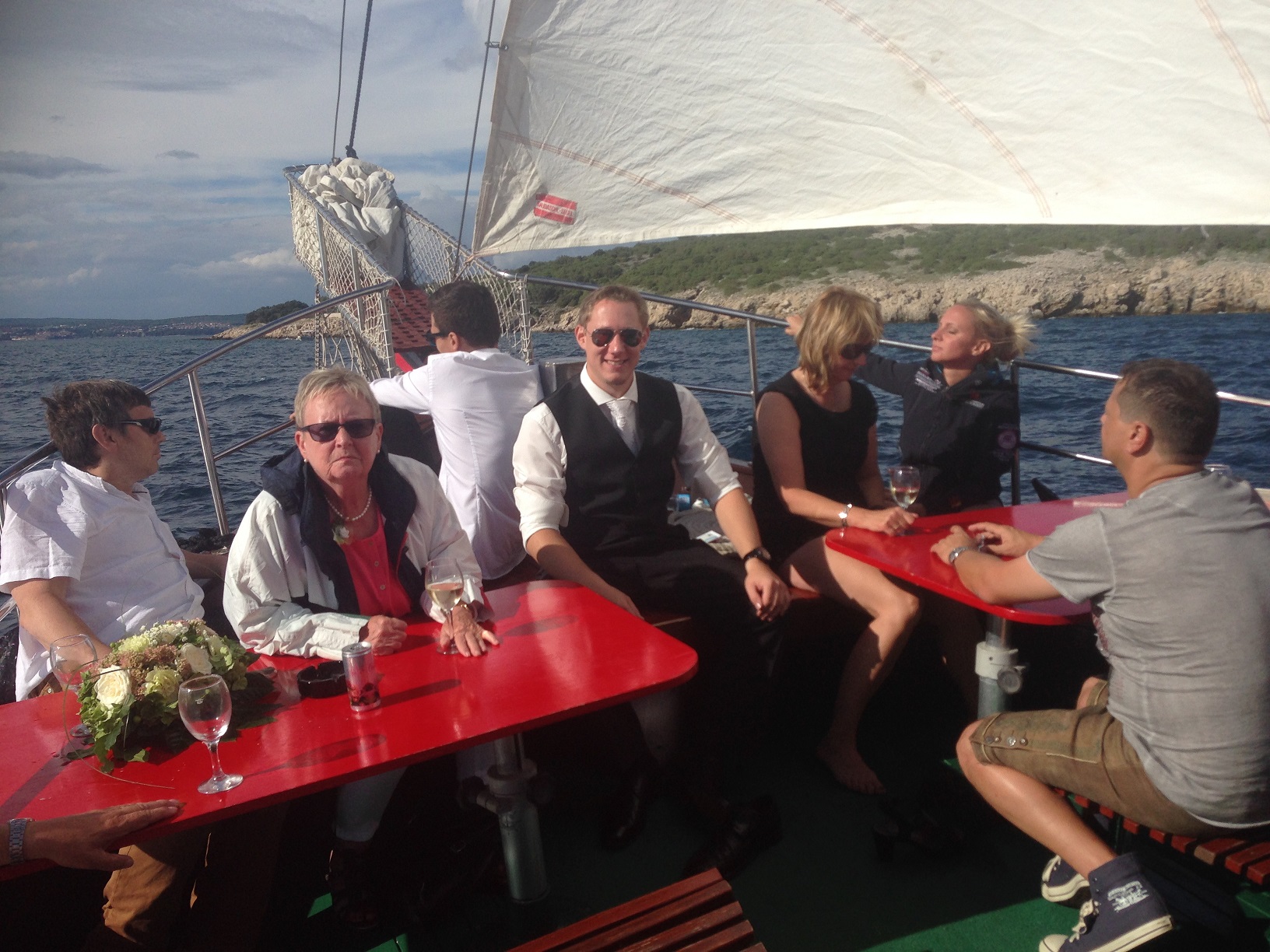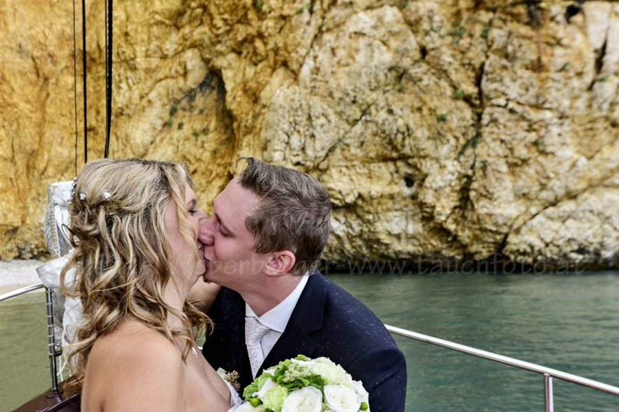 Im Winter dieses Jahres ging bei uns ein Mail ein, eine für uns vollkommen neue Anfrage, die sofort unser Interesse geweckt hat. Michael Weberberger, der preisgekrönte, bekannte Unterwasserfotograf wollte wissen, ob wir denn bereit wären eine Hochzeit am Meer hier bei uns in Kroatien zu gestalten und zu planen, da seine Tochter Anja und der zukünftige Schwiegersohn Christian den Schritt wagen wollten. Sofort hat diese Idee Günni fasziniert, und noch in Graz fand das erste Treffen mit der Familie Weberberger und Scheriau statt. Hier wurden schon mal alle Grundsteine für die Hochzeit fixiert, der Termin stand bald fest und auch das die Trauung auf dem wunderschönen Boot Košljun stattfinden soll.