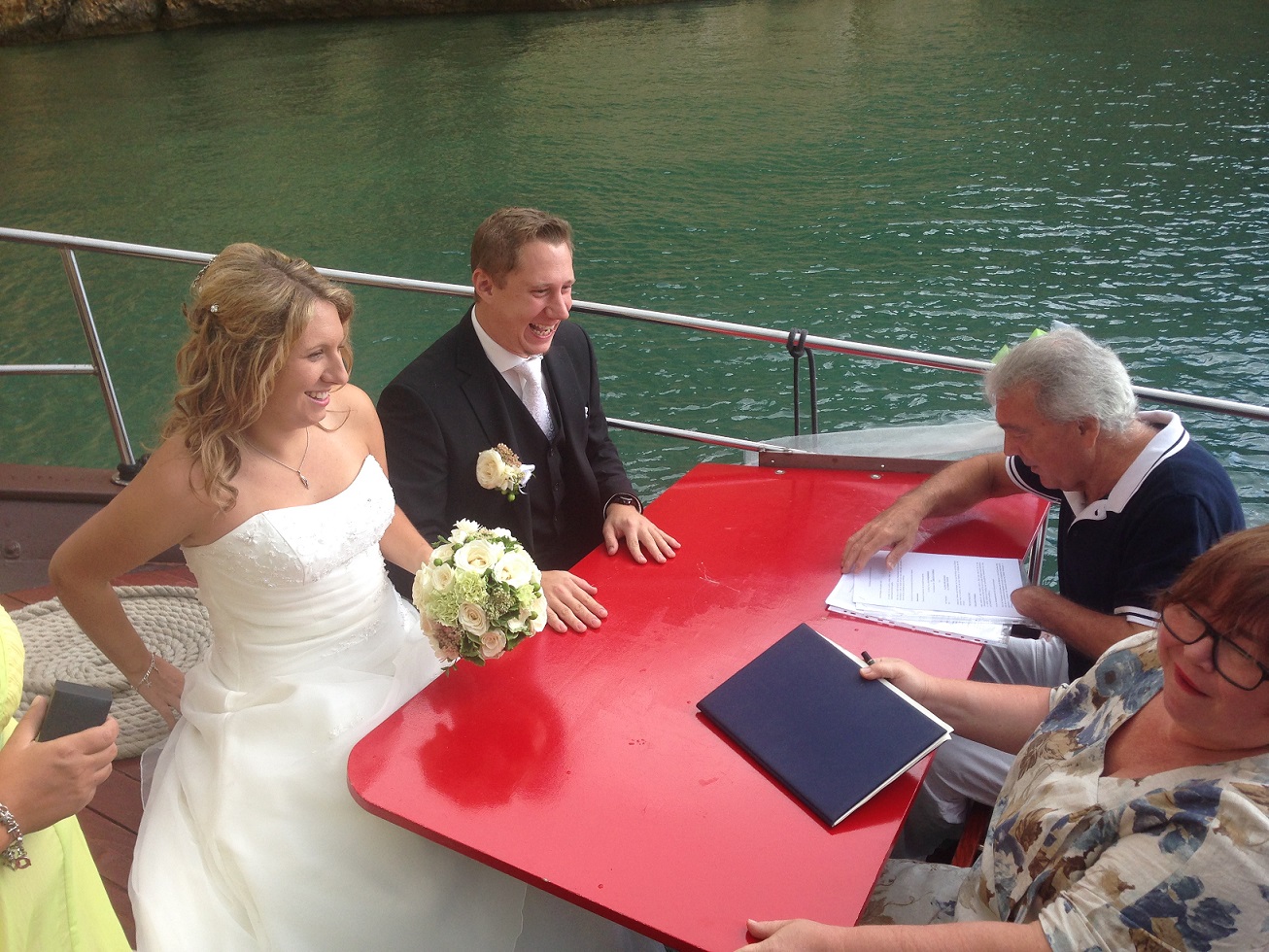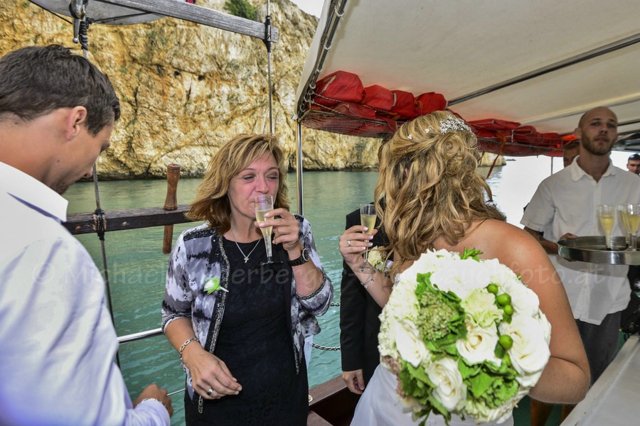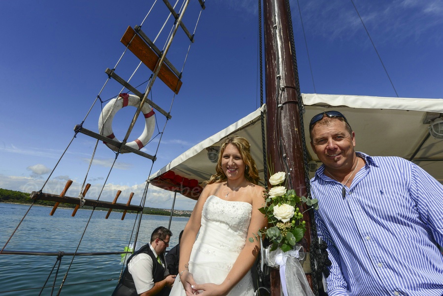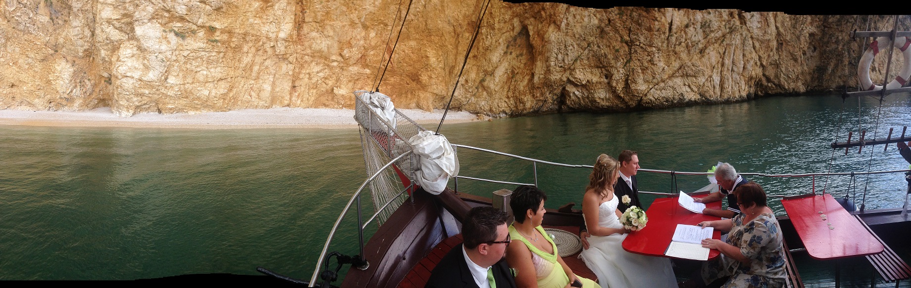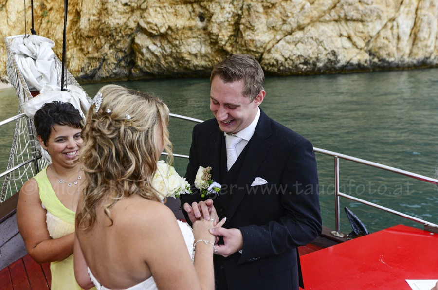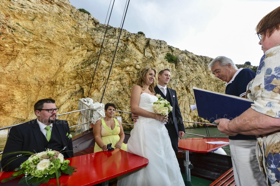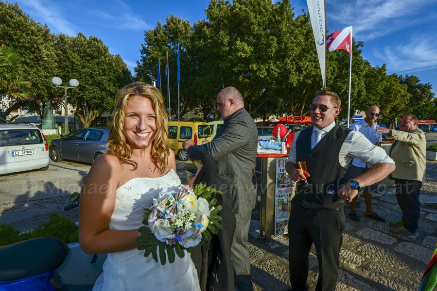 Im Winter dieses Jahres ging bei uns ein Mail ein, eine für uns vollkommen neue Anfrage, die sofort unser Interesse geweckt hat. Michael Weberberger, der preisgekrönte, bekannte Unterwasserfotograf wollte wissen, ob wir denn bereit wären eine Hochzeit am Meer hier bei uns in Kroatien zu gestalten und zu planen, da seine Tochter Anja und der zukünftige Schwiegersohn Christian den Schritt wagen wollten. Sofort hat diese Idee Günni fasziniert, und noch in Graz fand das erste Treffen mit der Familie Weberberger und Scheriau statt. Hier wurden schon mal alle Grundsteine für die Hochzeit fixiert, der Termin stand bald fest und auch das die Trauung auf dem wunderschönen Boot Košljun stattfinden soll.