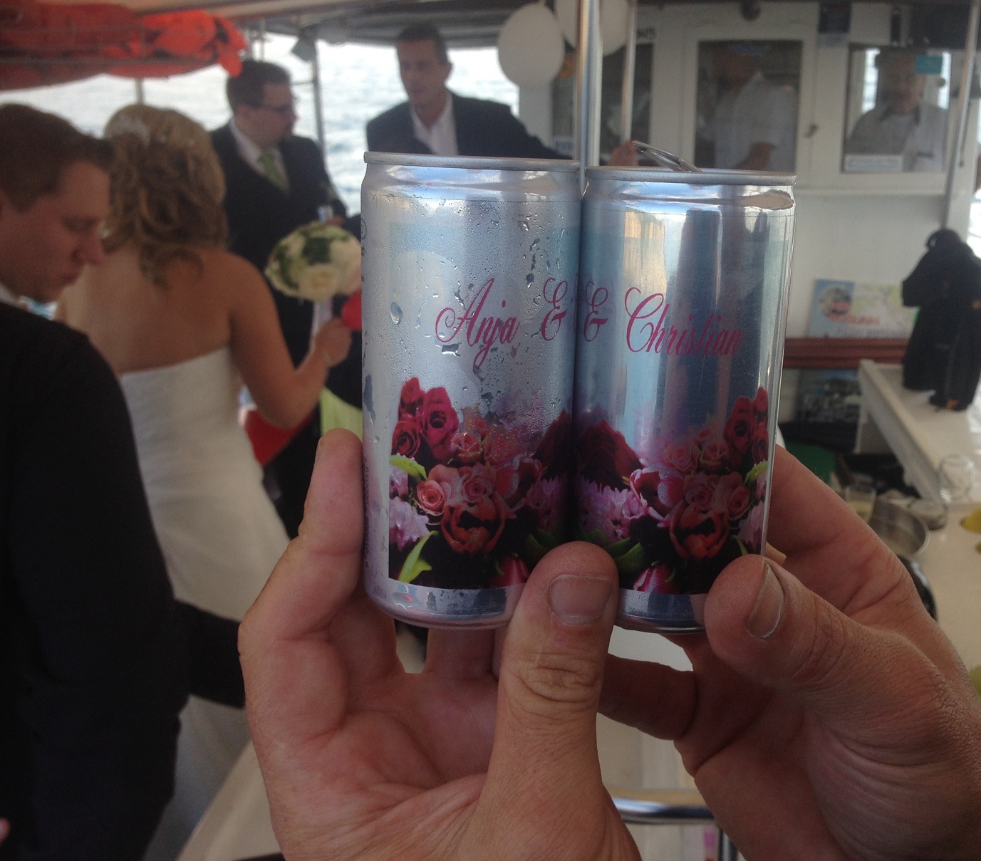 Vom gesamten Team von Styria Guenis Diving Center gab es natürlich auch eine kleine Aufmerksamkeit und zugleich auch ein Andenken für alle Gäste. Selbst gestaltete Getränkedosen mit Prosecco gefüllt!
