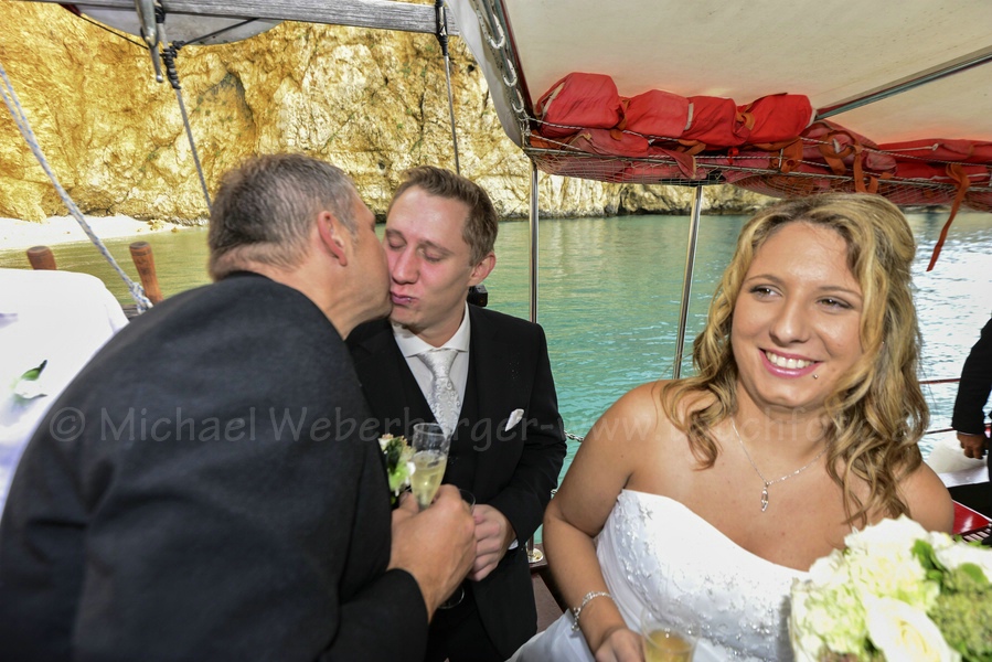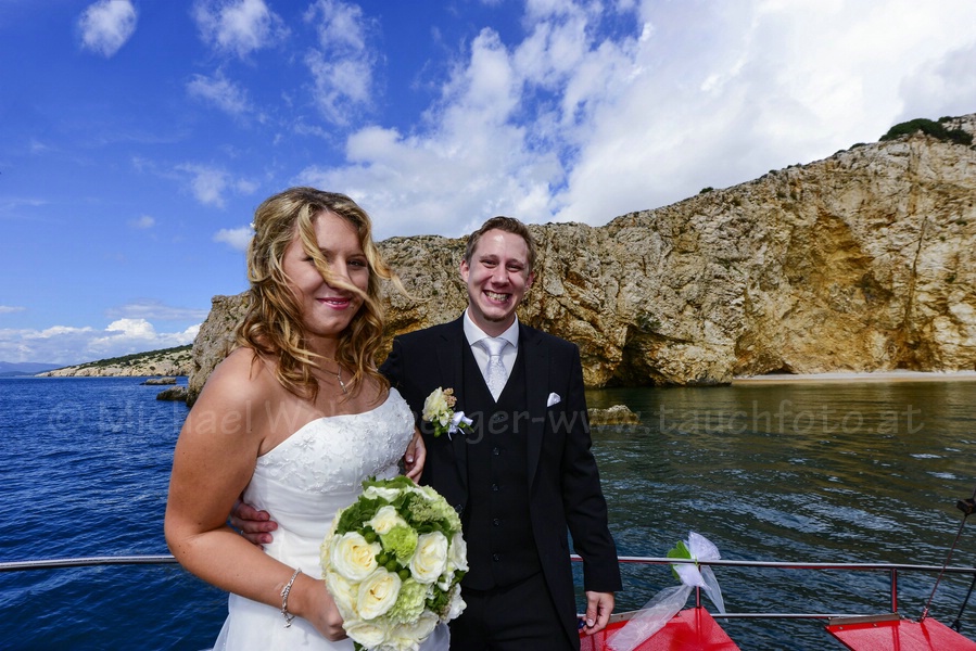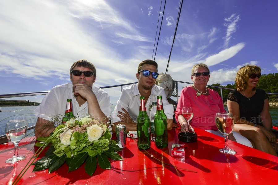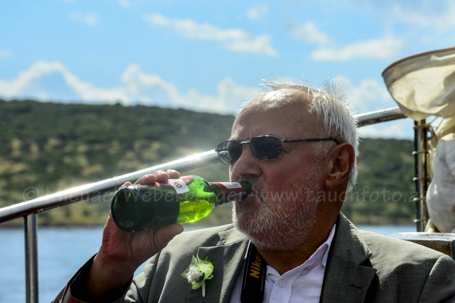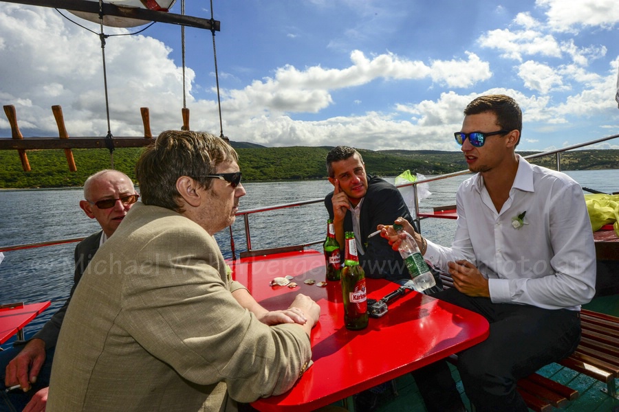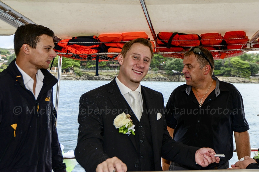 Am nächsten Tag wurde noch eine Panoramafahrt mit der Košljun gemacht. An diesem Tag wollte das Wetter so gar nicht mitspielen und es regnete des Öfteren. Nichts desto trotz fand ein Unterwasser Fotoshooting statt, organisiert von den beiden Fotografen Martin Aigner Mapics und dem stolzen Brautvater Michael Weberberger.
