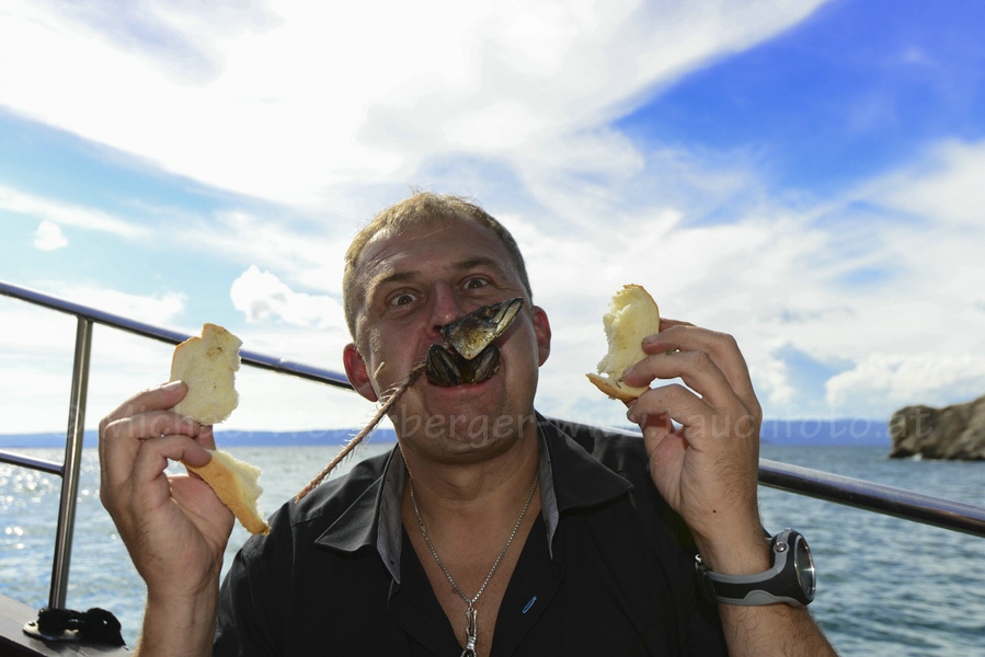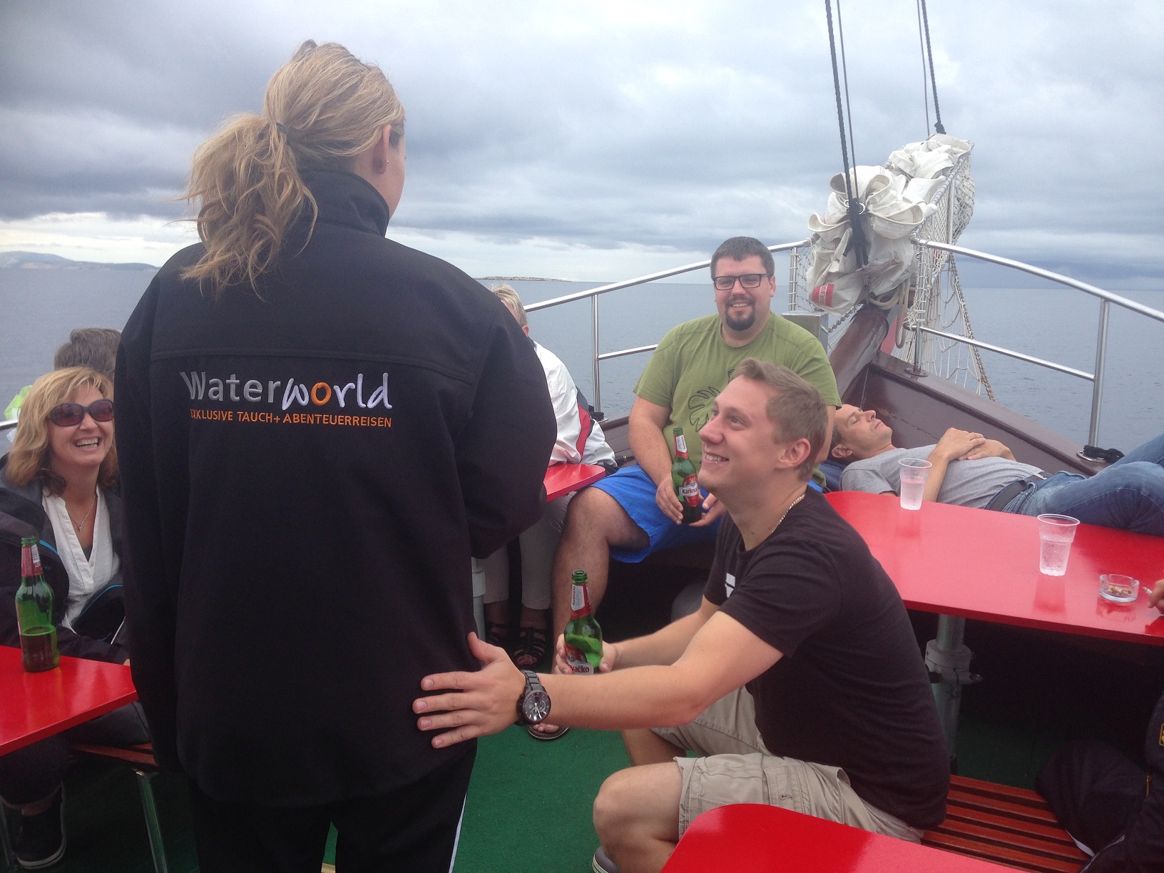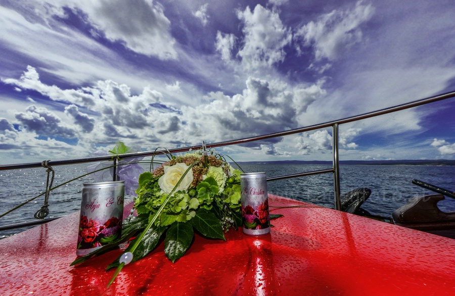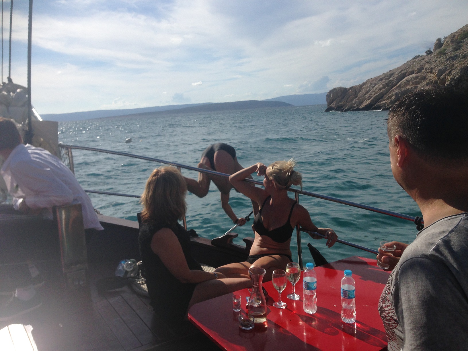 Am nächsten Tag wurde noch eine Panoramafahrt mit der Košljun gemacht. An diesem Tag wollte das Wetter so gar nicht mitspielen und es regnete des Öfteren. Nichts desto trotz fand ein Unterwasser Fotoshooting statt, organisiert von den beiden Fotografen Martin Aigner Mapics und dem stolzen Brautvater Michael Weberberger.