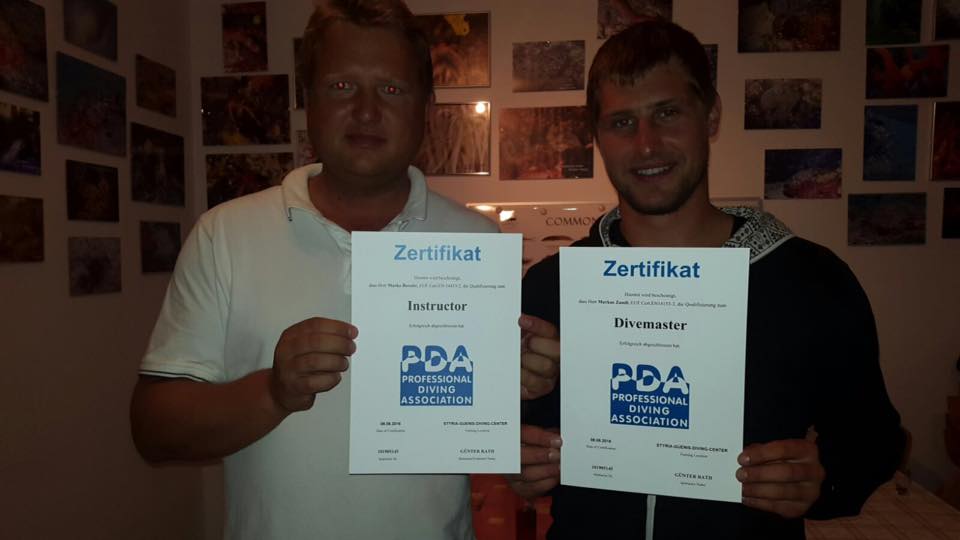 Einen neuen Divemaster und einen brandneuen Instruktor können wir nun bei PDA in der professionellen Schiene der Taucher willkommen heißen.